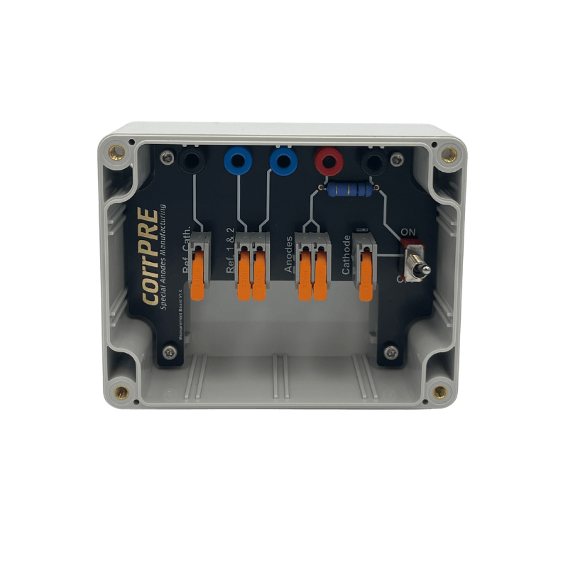 This compact and robust cabinet is designed for monitoring galvanic cathodic protection (CP) systems. Equipped with user-friendly WAGO terminal blocks and an integrated on/off switch, it enables reliable system monitoring and easy execution of depolarization tests.